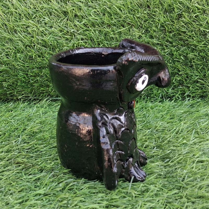 The textured feather detailing adds depth and visual interest to the design, making it a standout piece in any setting. Perfect for displaying small succulents, cacti, or air plants, this owl planter serves as both a functional container and an eye-catching decorative accent. Its compact size makes it ideal for windowsills, desks, shelves, or as part of a garden display.